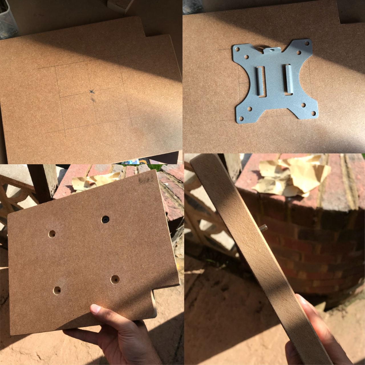 I had to purchase: - A monitor arm (link to mine), - A piece of wood which I cut to the right size (optionally with a square cut out for the camera, - A relatively cheap magnetic cover for the iPad, - and some wood glue.
